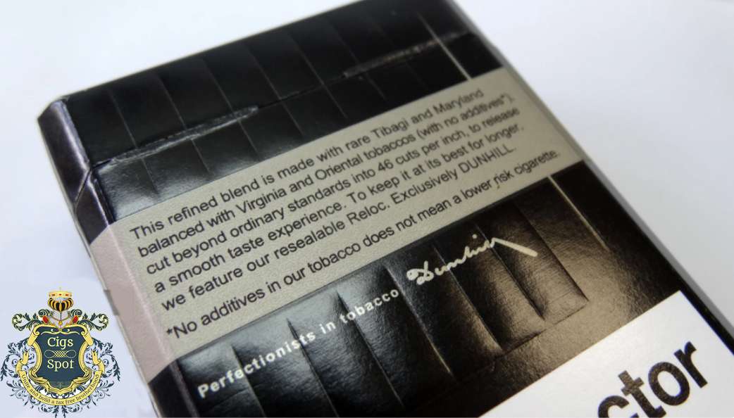 Our sample package design matches the pre-rebranding version of 2018. Remember? This is when the “red” Dunhill was taken off the market, and the Dunhill crest disappeared from the design of the remaining varieties — with the remnants of the once prestigious Royal Warrant.