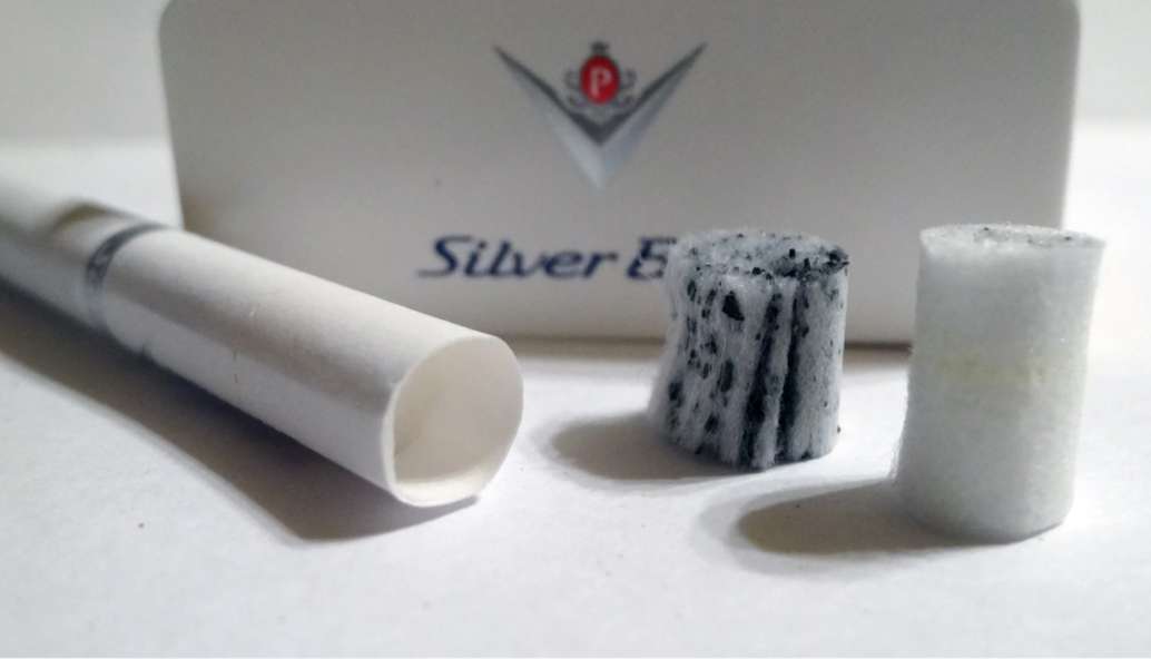 The filter consists of two “kegs” made of acetate fiber. The first is of medium density and very rich in carbon crumb saturation, and the second is made of pure acetate fiber, but it is much denser. The structure is crowned with a mouthpiece made of thick cardboard. The filter paper carries one perforation line.