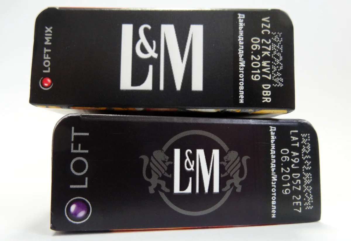 The design of the cigarettes themselves is slightly different — the “button” is of course purple, but there are no light gray “waves” on the filter. The thing is, perhaps, that this variety came on the market before the “red” counterpart and has the original design. I would not be surprised if in the near future the design of “purple” L&M will be “pulled up” to the same standard Loft.