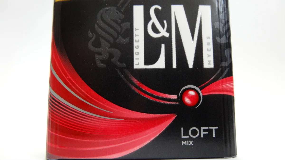 L&M Loft Mix. Both varieties are available only in the Compact format and in appropriately sized cartons with rounded edges. There are common elements in the design, such as the black background of the pack, the stylized Ligget & Mayers coat of arms, and the brand name. The individual elements are a pretty realistic “button” image and some abstraction, highlighted by the color corresponding to the variety. In Loft Mix it is red and its light shades.